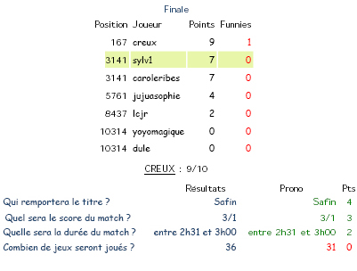 | Classement FINAL (moyenne / cf. règlement) : Victoire de Nono !!! | ||||||||||||||||||||||||||||||||||||||||||||||||||||||||||||||||||||||